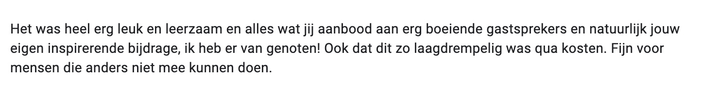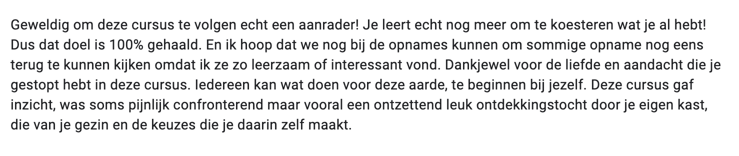 Stuur me dan binnen 14 dagen na start van de cursus een mail op [email protected], dan krijg je je geld terug.